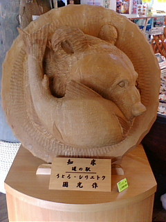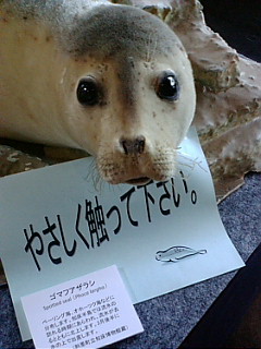 知床斜里駅の中にはゴマちゃんの剥製がっ! めっちゃかわいかった! あと道の駅にあった木彫りです。