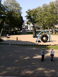 タイヤ公園の全体図です。雨の日タイヤの上歩いたら転ぶから気をつけて!