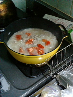 降られた~。朝は霧っぽかった。頭がぽやぽやになったよん。 さあ 鍋にはトマトが入りました。 ていうか 鍋の写真ひっぱりすぎ? 細かいことは気にするな~! わかち…こ。 Eiji