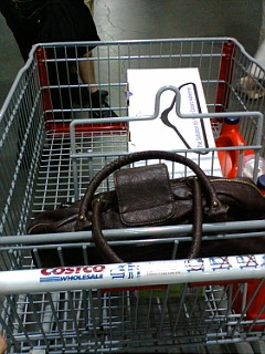 コストコのカゴも でかっ!普通のカートが小型車なら コストコは ハイエースって感じで 小回りきかない! 買い物中 狭い通路で 交通渋滞になることも…。 さすがコストコ…。(^^)
