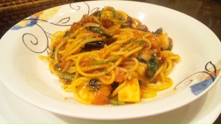 シーフードパスタなのですが、イカ、タコ、ホタテ、エビ、