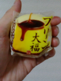 ぷりん大福 うまいっす! 中に カラメル?が入っていて 味わいは プリンです。 もう二回ほど食べてしまいました。 お薦めです。(~▽~@)♪♪♪