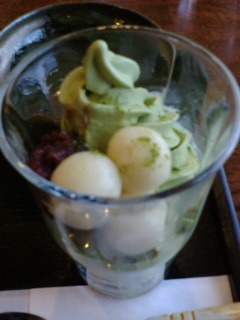 家の近くにある お茶屋さんに行ってきました。店舗にカフェがあって 甘味とお茶を楽しめる空間。食べたのは抹茶パフェ。さすがお茶屋の抹茶パフェ すごいうまかった! お茶とセットもあるので 冷たい白玉食いつつ熱いお茶で飲み干すのが たまらない感じでした。 次回は どら焼き食べよ。(^-^)