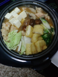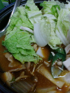 鍋食べました。最近 鍋食べ過ぎ~。 体が温まるからやみつきー! タラと鮭を入れたよ。 魚うめ~!ve