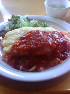 オムパレス! 中には角切りベーコンが入ってるのよ~。相変わらずボリューミーだった。 隣りのおばちゃん達は 容器もらってお持ち帰りしてました~。 eiji